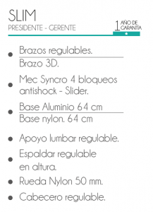 | TIPO DE SILLA: | PRESIDENCIAL, GERENCIAL |